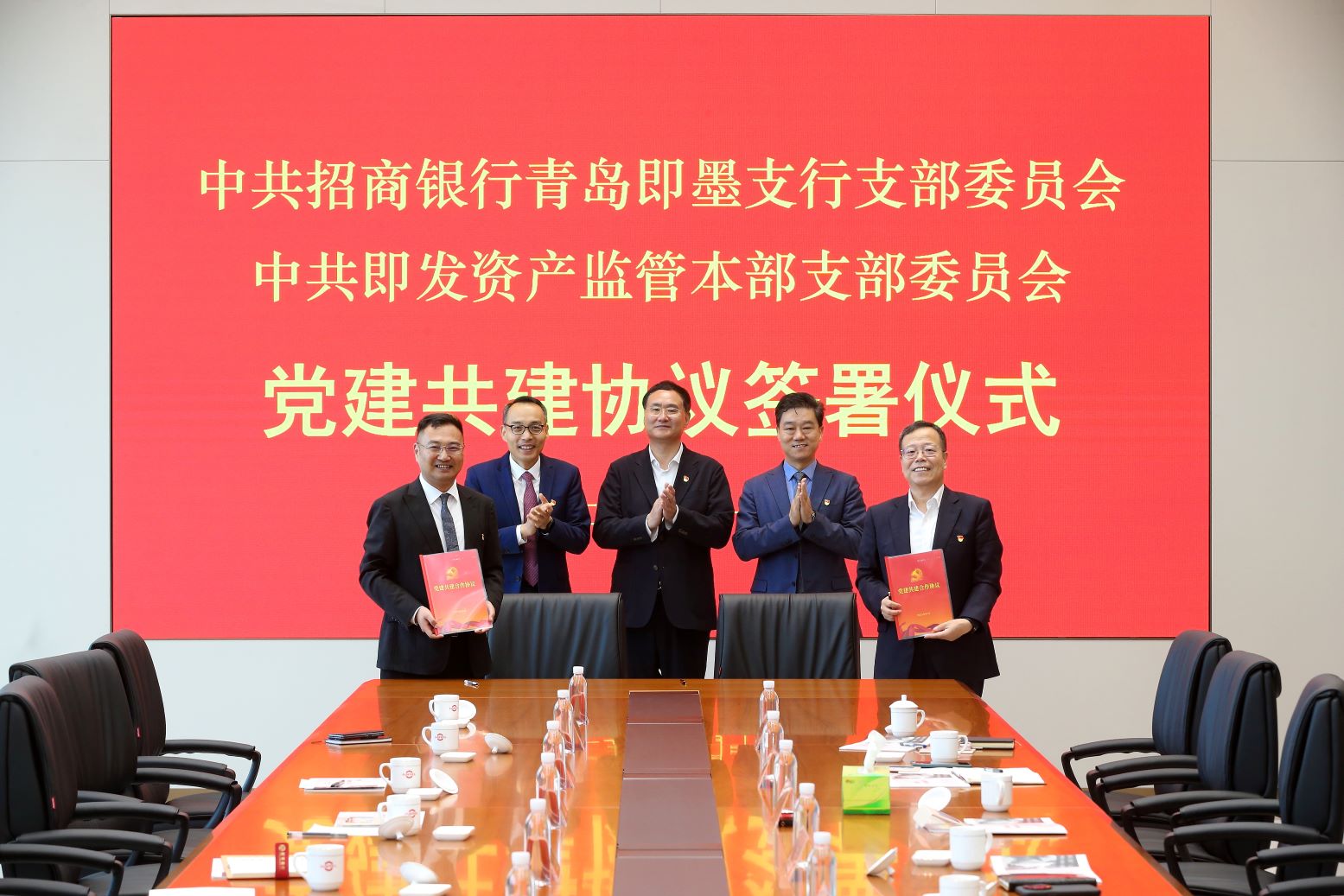 中共即發(fā)資產(chǎn)監(jiān)管本部支部委員會(huì)與中共招商銀行青島即墨支行支部委員會(huì)簽署黨建共建協(xié)議