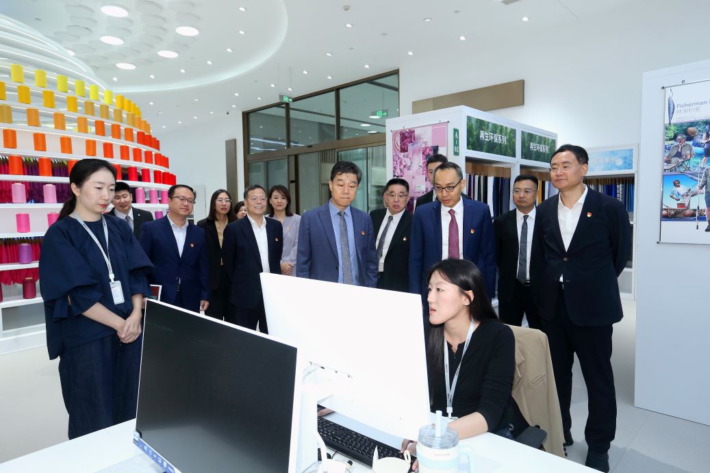 李琦書記(右二)在創(chuàng)新中心了解面料研發(fā)等情況